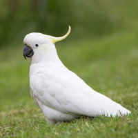 A sulphur-crested cockatoo walking on the grass in Risdon Brook Park, Tasmania, Australia. (Photo: JJ Harrison, Wikimedia Commons, CC BY-SA 3.0)