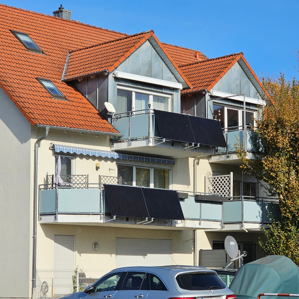 Balcony solar are small, plug-in solar panel systems designed for apartments, balconies, and patios. The technology has taken off in Germany and much of the EU but has yet to become legal in most places in the United States. (Photo: Nikolai Twin, Wikimedia Commons, CC BY 4.0)