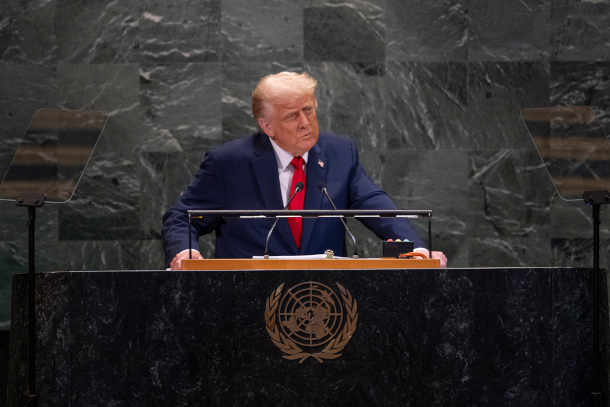 President Donald Trump called climate change the “greatest con job ever perpetrated on the world” during his speech at the United Nations on September 23, 2025. Nearly half a billion dollars in funds for his 2024 presidential campaign money came from the fossil fuel industry. (Photo: The White House, Wikimedia Commons, Public Domain)