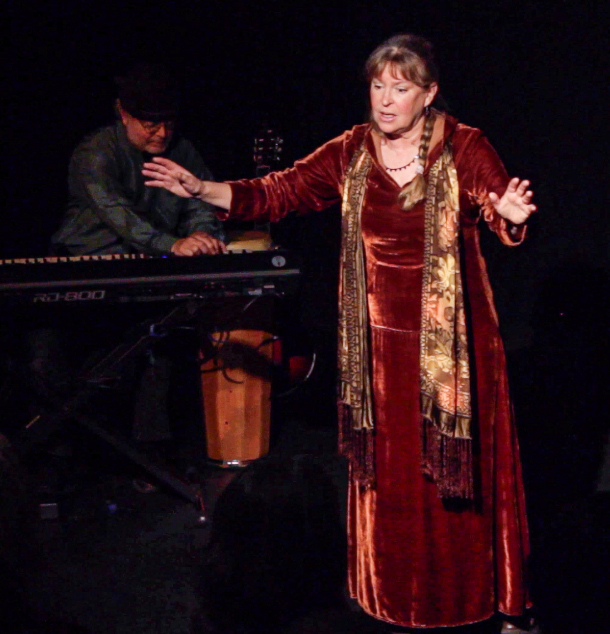 “He transformed her into the very first Halcyon bird.” Diane Edgecomb performs “Ceyx and Alcyone.” (Photo: From video captured by Larry Buckley)