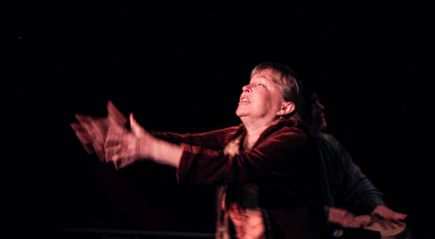 Diane Edgecomb performs the moment when Alcyone prays to Hera to send Ceyx home safely. (Photo: From video captured by Larry Buckley)