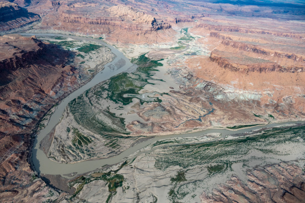 The Colorado River snakes through desert canyons in the American Southwest, supplying drinking water and irrigation for the region’s cities. (Photo: Alexander Heilner, The Water Desk with support from LightHawk)