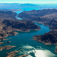 Lake Mead, the nation’s largest reservoir, is a key piece of storage infrastructure for Los Angeles, Phoenix, and agricultural areas in both the U.S. and Mexico. (Photo: Ross Rice, The Water Desk with support from LightHawk)