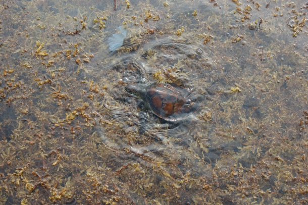 Normally, sargassum can provide excellent habitat for marine life, like baby sea turtles in the open ocean. However, when blooms cause the seaweed to congregate onshore, it can become an obstacle and hazard. (Photo: FWC Fish and Wildlife Research Institute, Flickr, CC BY-NC-ND 2.0)