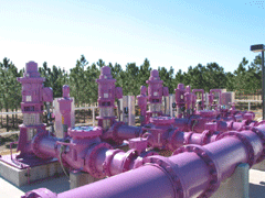 Purple pipes to carry reclaimed water have been installed in many of the city of Clermont's newer subdivisions. The purple color warns plumbers that they are not drinking water. (Courtesy of the City of Clermont, FL)