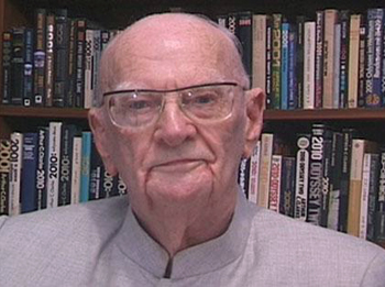 Arthur C. Clarke in a video greeting to NASA to mark the flyby of Cassini spacecraft last September. (Image: NASA)