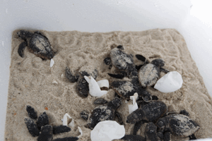 The first sea turtle hatchlings are released. (Sea Turtle Conservancy)