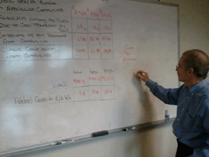 GELLERMAN: Well, we put a grid here on the whiteboard, and we left some open spaces. We copied this from your study, and you have a lot of categories, I guess about eight or nine categories of the ‘hidden costs’. Let’s deal with the first one: the public health burden in Appalachian communities. What’s that?