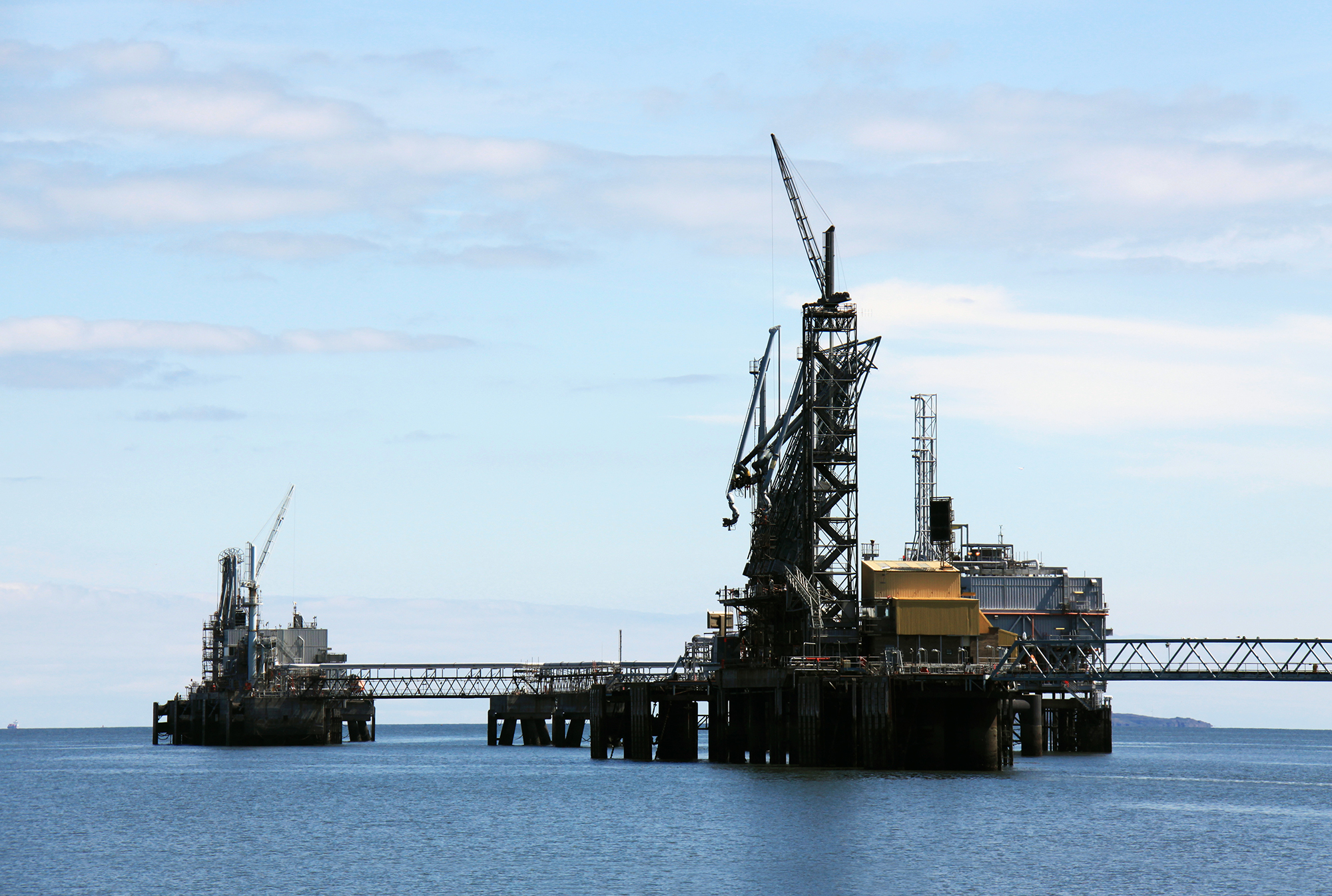 Offshore oil rigs in the Firth of Forth in southeastern Scotland. Industry estimates put the reserves of offshore oil and gas under the North Sea at 15 to 24 billion barrels. (Photo: Linda More; Bigstockphoto)