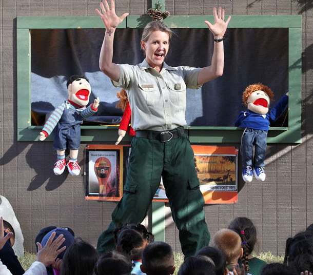 As a Battalion Chief, Abby Bolt teaches kids and the public about forest fire prevention. (Photo: Casey Christy / Bakersfield Californian News Paper)