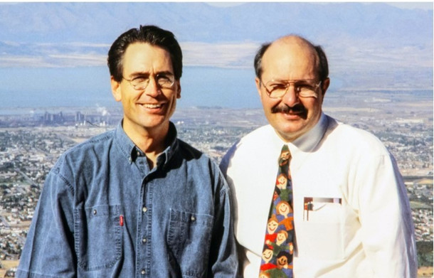 Dr. Arden Pope (left) and Dr. Doug Dockery (right) circa 1995, with Utah Valley and the Geneva Steel Mill in the background. Dr. Pope’s paper on the health effects of air pollution from the mill caught Dr. Dockery’s attention, leading to nearly four decades of collaboration. (Photo: Doug Dockery and Arden Pope)