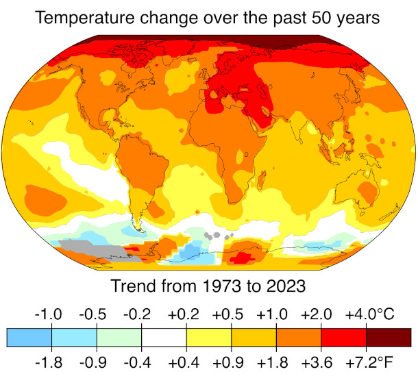 Planet Earth has warmed considerably since 1989 when Bill McKibben wrote The End of Nature, a book where he sounded the alarm on human-induced pollution and climate change. (Photo: NASA’s Scientific Visualization Studio, Key and Title by Eric Fisk, Wikimedia Commons, CC BY-SA 4.0)