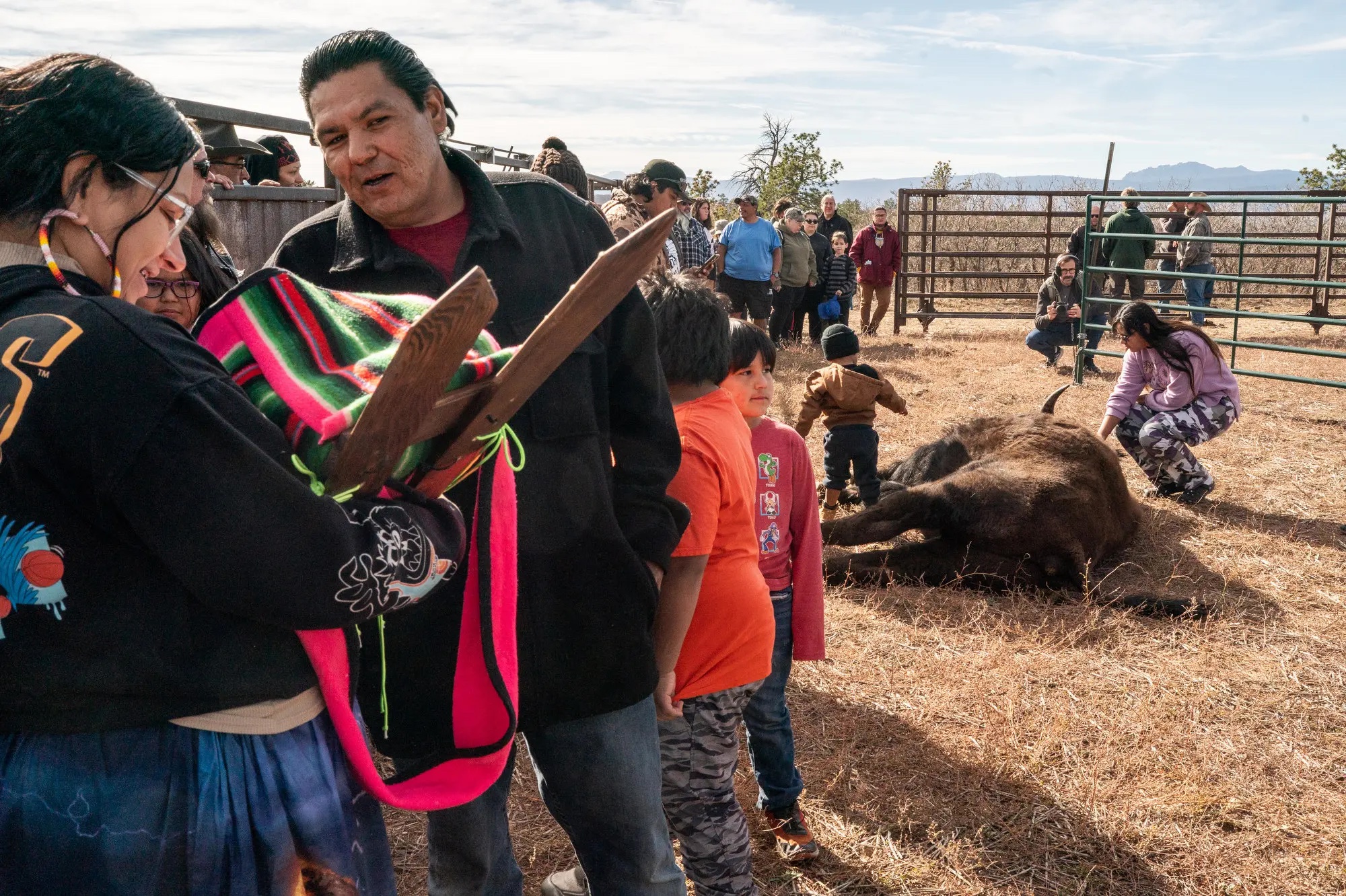 BRASCH: The process will take six to eight hours, yielding enough meat for more than 150 people plus a skull for ceremonies and nutritional supplements made from ground organs. It’s an experience nine-year-old Malcolm Sanchez doesn’t want to miss.