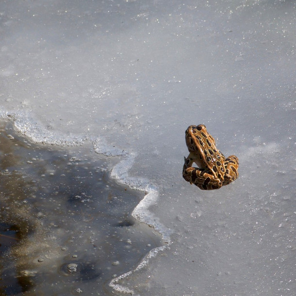 During the winter, aquatic frogs can survive under the ice by engaging in cutaneous respiration, or “breathing” through the skin. (Photo: Wayne MacPhail, Flickr, CC BY-NC-SA 2.0)