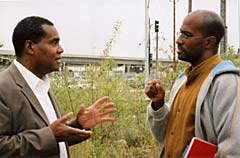 Van Jones, Executive Director of the Ella Baker Center for Human Rights, and Steve Curwood at the former site of the Red Star Yeast Factory in West Oakland. The reclaimed site will be developed into a community training center. (Photo: Eileen Bolinsky)