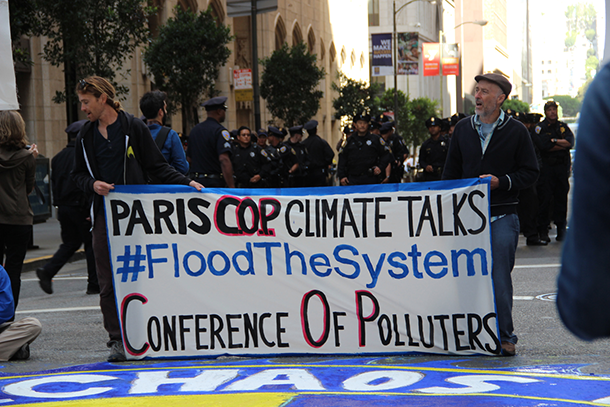 Some protesters feel the Paris climate negotiations are polluted by fossil fuel interests. (Photo: Peg Hunter, Flickr CC BY-NC 2.0)