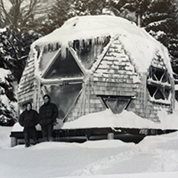 CURWOOD: The cover of your book has, I think it's a picture of your parents sitting on the scaffolds of the geodesic dome. What's the story behind that dome?