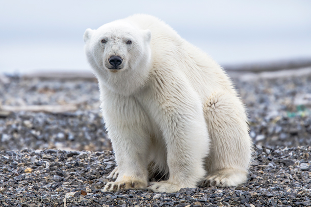 A polar bear on an ice-free shoreline. (Photo: Mark Seth Lender)