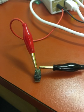 Downloading data from a tiny light-level geolocator looks a bit like jumpstarting your car. (Photo: Autumn-Lynn Harrison)