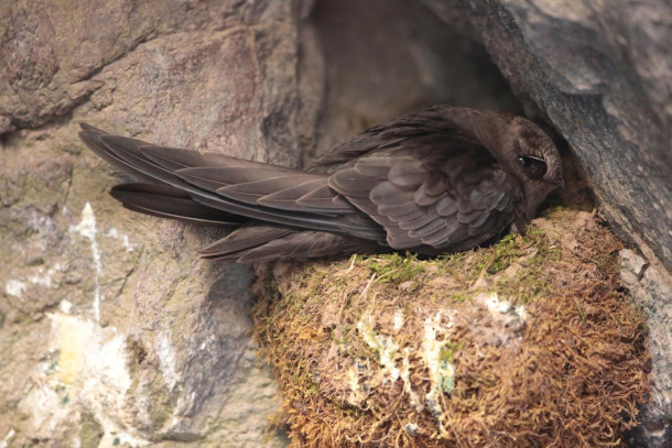 A black swift in its nest. (Photo: Aaron Maizlish, Flickr, CC BY-NC 2.0)