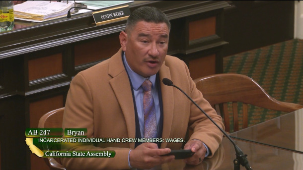 On March 11, 2025, Herrera advocated for the passing of bill AB 247 in the California State Assembly. The bill vastly increases the pay of incarcerated firefighters. (Photo: Courtesy of Eddie Herrera Jr.)