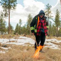 Cultural burning hands-on practice during a fire camp at First Nations’ Emergency Services Society of British Columbia (FNESS) in Cranbrook, BC. (Photo: Jordan Melograna, Indigenous Leadership Initiative)