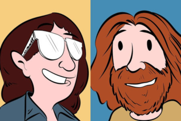 Zach’s rendering of Kelly and himself. (Image: Drawn by Zach Weinersmith)