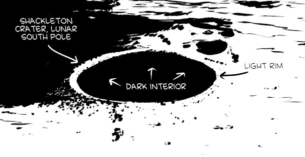 The light rims found on the edge of the craters on the Moon would be ideal places to put up solar panels (Image: Drawn by Zach Weinersmith)