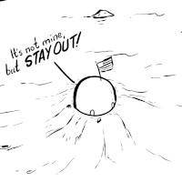 A “quasi-sovereignty” could hypothetically be set up at one of the poles of the Moon without directly being claimed. (Image: Drawn by Zach Weinersmith)