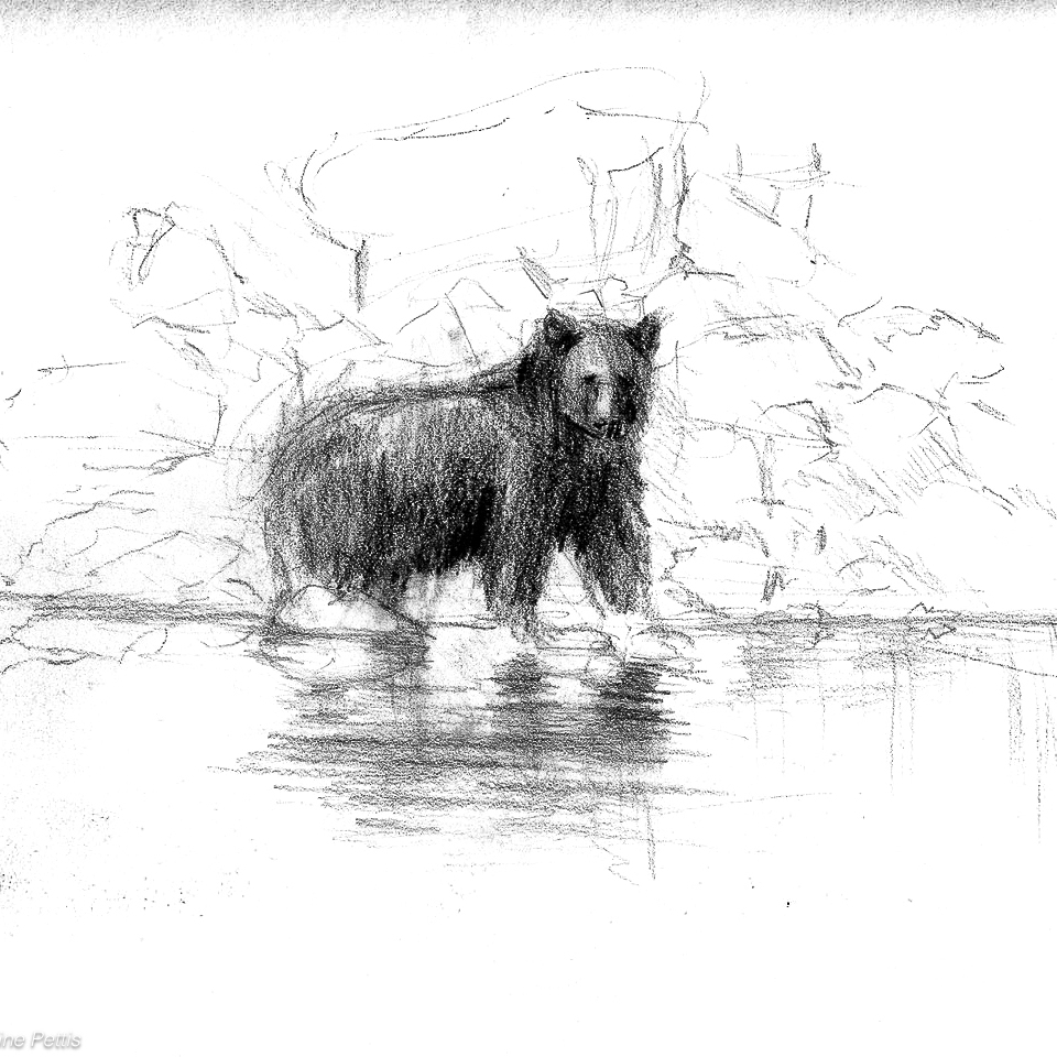 Valerie Elaine Pettis, artist and wife of Mark Seth Lender, draws the grizzly spotted in Yellowstone National Park. (Photo: © Valerie Elaine Pettis)